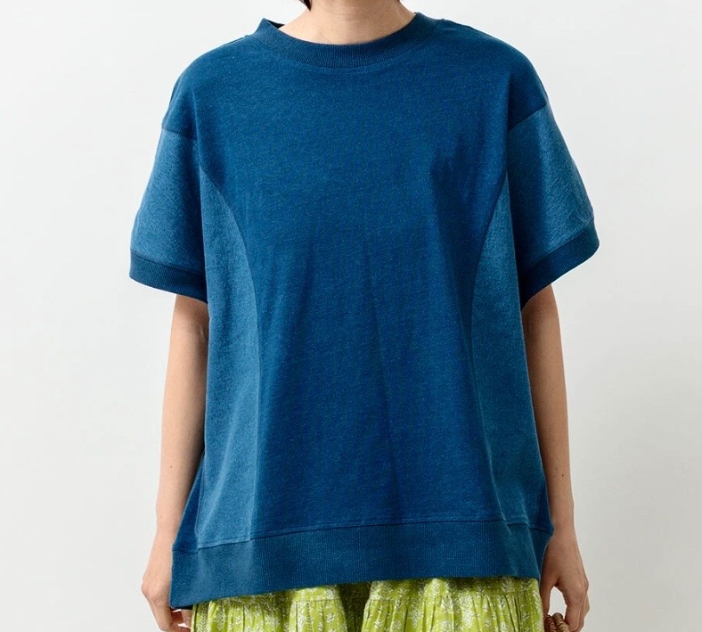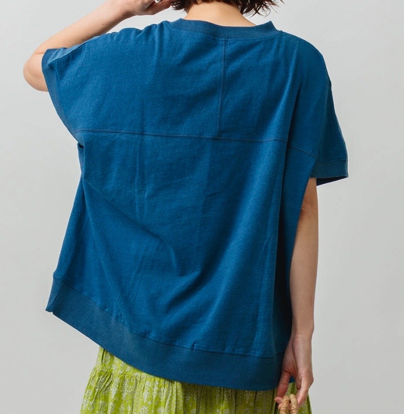 インディゴ天竺 切り替えクルーネック プルオーバー